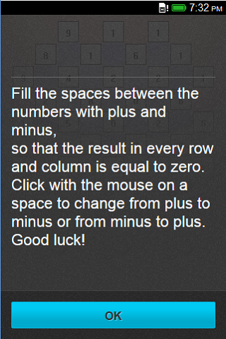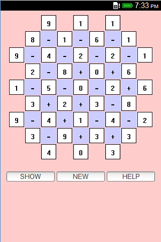 Plusminus is a PC-Game, which is a part of the '7 by one stroke' package, translated from C++ into HTML and JavaScript
