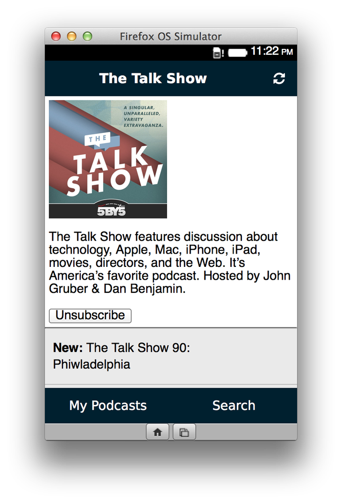 Listen to your favourite podcasts on your HTML5-powered device or browser. This app requires at least Firefox OS version 1.2 to display content properly! If you experience issues with downloads, please upgrade your phone first! This program is free software; it is distributed under an MIT License. The code is available on Github.
