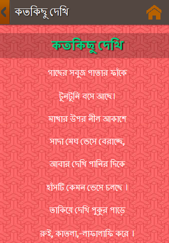 The book of "Bangla" poems for Everybody. Have a lot of interesting poem. This app made by [ 13 years boy]