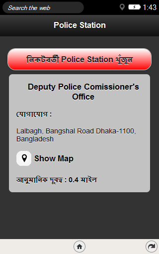 An app to help the common peeople to find out the nearest Police Station at the time of Emergency! This app uses the Geolocation to sopt you, findout your nearest Police Station and plot on the map using Google Maps.