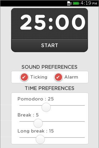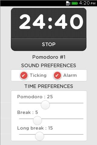 Easy and useful pomodoro timer from www.pomodorotime.org. You can use it without internet connection