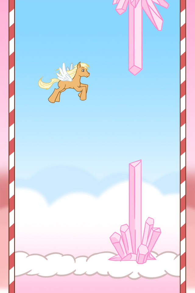 Yeah, Yeah, another Flappy bird again. Why should you pay more attention to this one? Because you assume control of a bright pink flying pony in a fantasy world so pink and cute that you’ll need a pair of sunlight glasses to be able to keep your eyes open. If you love difficulty and a specific cartoon aimed at children that we cannot legally name here, Pony Fly in a fantasy Land is the perfect game for you. Pony Fly in a Fantasy Land is a game of reflexes in which you have to keep your little pony in the air as long as possible. When you click/touch the screen, your pony will jump. You need to make it go through holes in walls. If you’re not accurate enough and your pony hit a surface, you lose. Take control of an adorable small pony in a universe cute enough to die for and hold on as long as possible in this game with a difficulty in total mismatch with its theme… because yes, you hardly expect cute ponies in a game in which you tend to die every 30 seconds… CARACTERISTICS - A poney - Pipes - The simplest gameplay ever - Hellish difficulty - Nervous breakdown