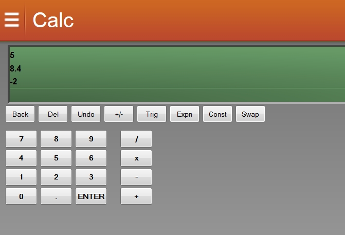 Calculator with reverse polish (postfix) notation, for power users. The calculator stores all calculations in a history, so that you can access previous results later. All data is stored locally, in your browser. This is the calculator that has got your back. Features: