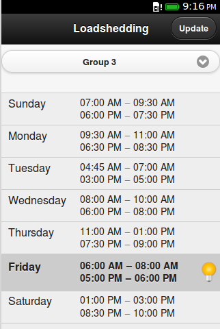 This app gives you Nepal (NEA) loadshedding(power-cut) schedule. It needs one time schedule download, can be used as offline app. Clean design using jQuery mobile.
