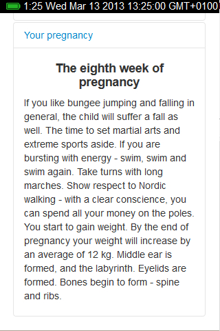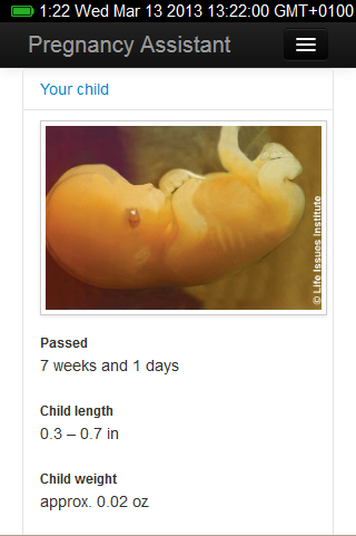 Pregnancy Assistant enables women expecting the child to track fetal development week by week. From first week of pregnancy to forty. Just enter the date of the last menstrual period