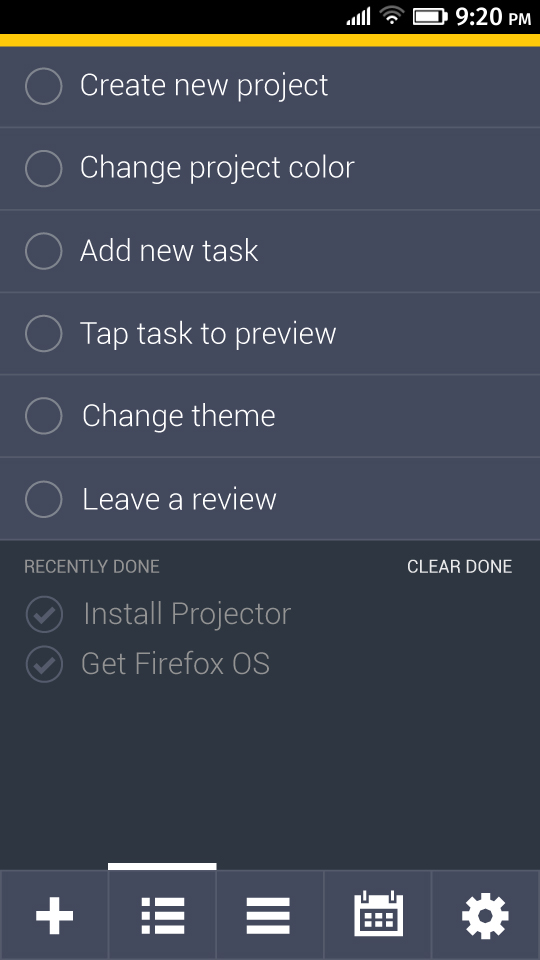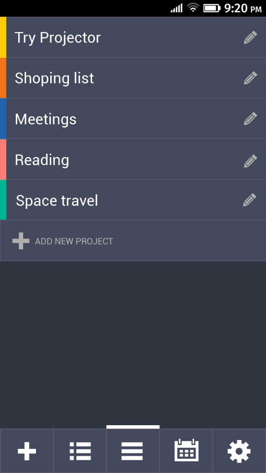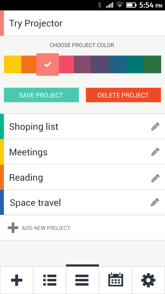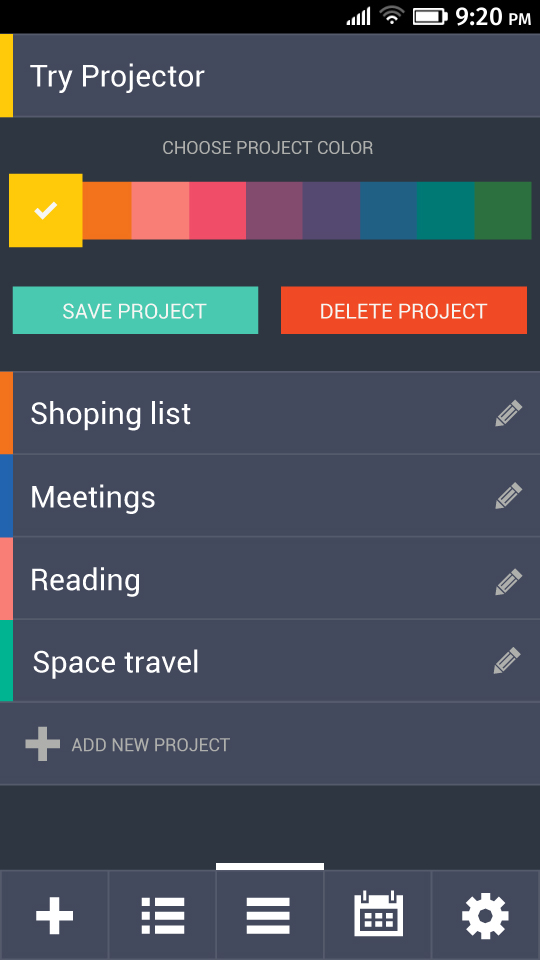 Projector helps you stay organized with an easy to use and colorful interface. You can create projects, rename them, change their color and assign tasks. Tasks can consist of: - Title - Image - Description - Date - Notification time Features: - Works offline - Dark and light theme - Add and crop images from gallery - Add notifications - Easy overview of tasks on calendar - Tabs and swipe navigation - Tap on task to preview If you have any issues contact us via support email bellow, we'll be glad to help. Happy Projecting!