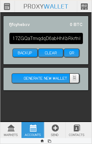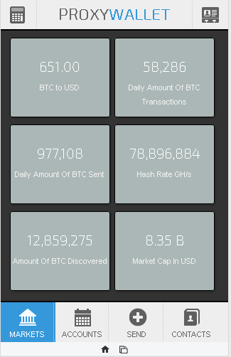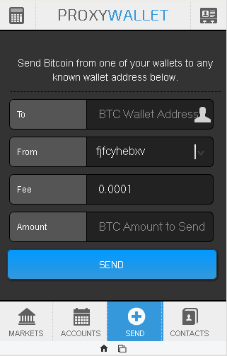 ProxyWallet Is A Secure HTML5 Bitcoin Wallet ProxyWallet is a more secure BTC Wallet the main upgrades to security are ProxyWallet uses 4096BIT encryption, 128 character long randomly generate passwords, all data is stored on the users device not our servers, and much higher security level protocols. ProxyWallet Uses The BlockChain API to retrieve market values, account balanaces and to relay raw transactions within ProxyBites secure servers. Storing and Sending Bitcoin from ProxyWallet! ProxyWallet is a 100% HTML5 Based Bitcoin Wallet. It requires a browser with HTML5 and LocalStorage functionality, and uses inline JavaScript to generate and manage non-existent private keys using deterministic methods that combine salts, passwords and PINs. Manage your wallet without actually storing your Bitcoin anywhere other than in your computer.