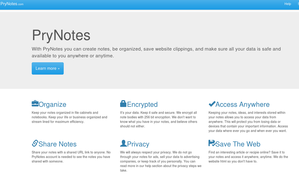 Web based note application. Save your ideas, notes, todo lists, recipes, news articles or anything you find online. Keep it safe and secure with encryption and in a database that won't be mined or sold. (open sourced on GitHub)