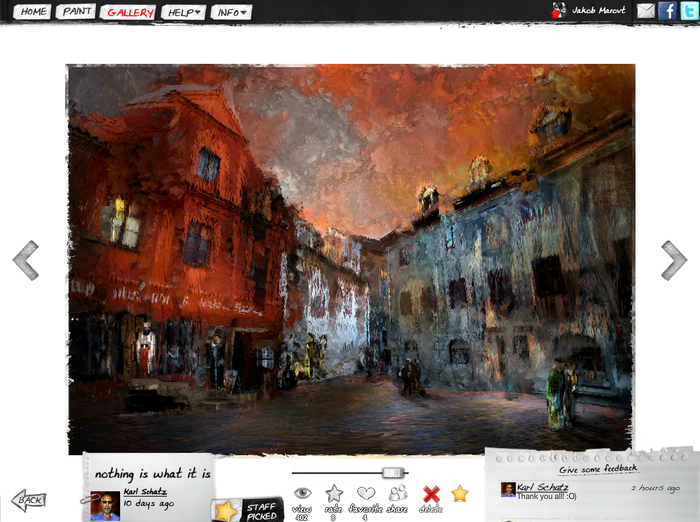 Create amazing art from photos! Psykopaint is an amazing photo painting app where you pick one of the 6 brushes provided and start painting while the colors are selected automatically for you. Psykopaint offers some unique and rather unusual results. Unlike photo-editing softwares based on filters, it works by sampling colors of the original photo to create a new image. Psykopaint offers an alternative to image manipulation techniques and could be considered as the missing link between photo-editing softwares (such as Photoshop) and painting softwares ( such as Corel Painter) Psykopaint offers a tight Facebook integration allowing you to post your paintings on your wall in one click and share with the online community. Feature roundup: - Online painting tool to give your images an original painting feel. - Unique brushes: interactives and fun, like the knife, ribbon or cannon. - Real time Filters: saturation, hue, brightness, contrast, tint in real time. New Filters will be added regularly. - Regular painting mode offering some of the most expressive brushes from any painting tool available online - Layers with blend modes. - Save images directly onto your computer. - Share your paintings with a tight interaction to Facebook and browse the gallery