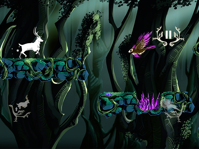 Purify the last forest The Last magical forest is home to many wonderful creatures. Multicolored birds, white deers... and poor little helpless fawns! Your job is to help them get to their mothers. Incarnate a beautiful white deer and pick up the little fawns as you run through forest avoiding dangers and obstacles. Challenge your reflexes in this charming runner that is sure to please fans of the genre. How to Play: Your deer will automatically move forward. Jump from platform to platform and dash to speed up. Save as many fawns as you can pick up and race to the end! Characteristics: - Runner and Platformer - Beautiful artwork - 40 leves