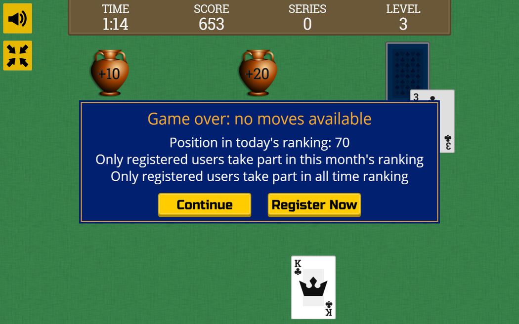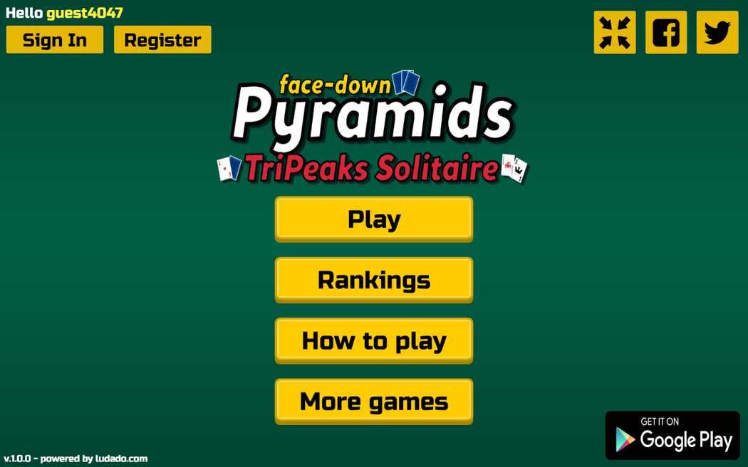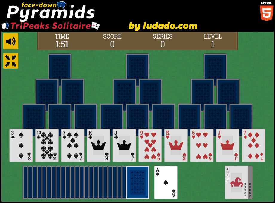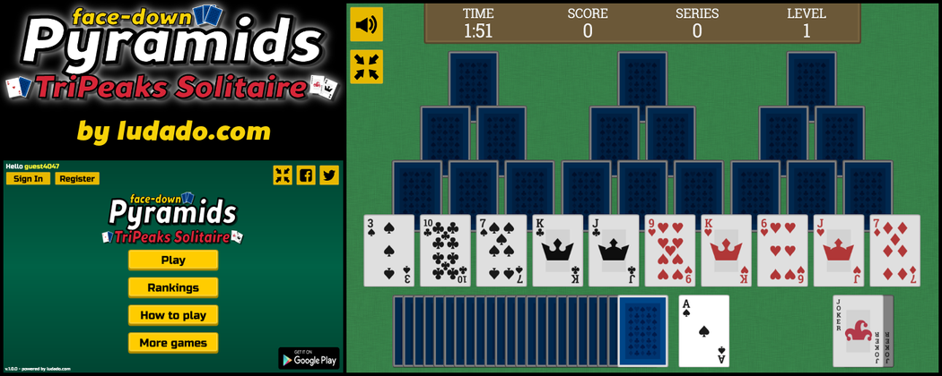 The face-down variation of the addictive and easy to play Tripeak Solitaire card game. At ludado we believe it is even more fun than the face-up version!. Can you be the best player in our global ranking?. These are the rules: - Clear all the cards in the 3 covered pyramids to complete each level!. - Beginning with the playing card, form series to remove the cards in the pyramids. You can remove a card if its value is previous or next to the playing card. - The longer the series the more points you will get removing a card. - If you use a joker you can remove any available card, but the series will restart. - If you can not continue put a new card in game. Features: - Play connected and compete in the global rankings with players from all around the world, or play disconnected and make your personal ranking. - Play as registerd player or play as guest (no sign up required).