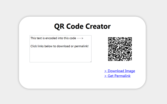 Create QR barcode images instantly with this free tool! With QR Creator you can instantly generate, download, and share QR barcode images! Once you've created an image, you can: - Download it, or - Get a permament link to it (paste anywhere on the web) Wondering what a QR image is? Basically, it stores some data visually. The data can be anything, but URLs are probably the most common. These QR images can then be easily scanned by anyone with a modern mobile phone! For example, you can create a QR barcode image with a URL (link to website) and then use a free app on your Android phone or iPhone to scan it. After scanning the code, your phone will instantly visit the URL. No typing required! You'll be surprised the first time you try it. It's pretty neat. QR code images can be scanned from a computer screen or from printed paper. These barcodes are gradually becoming more popular; you sometimes see them on product packaging and on banner ads around the web.
