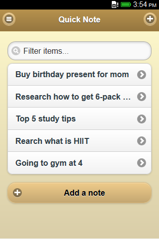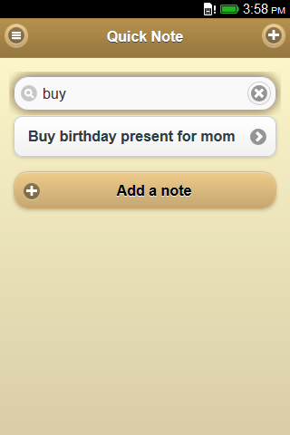 Quick Note is built with simplicity in mind. Easily save note and search note by title. You can send notes by email. Works completely offline. Supports English, Spanish, Portuguese, Polish, German, Greek, Hungarian. Keywords : Notepad, note, notebook, notepad, notes, Shopping List, Todo list, Todo, To do List, To do, 2do, To-do, Shopping, list maker, Calendar, Task, Memo, text editor, Sticky Note, Post It, notes, notepad, memo pad, memo widget, sticky, editor, getting things done, journal, awesome