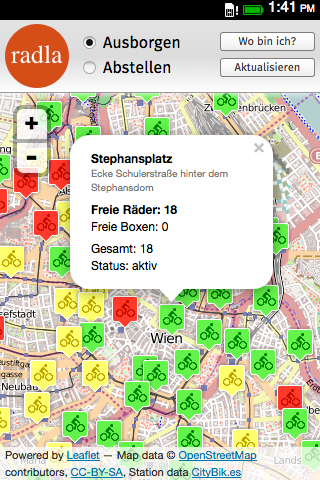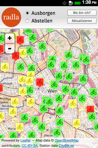 Finde freie Räder und Boxen für Vienna Citybikes.
