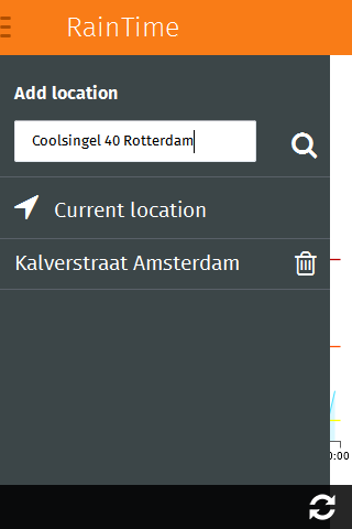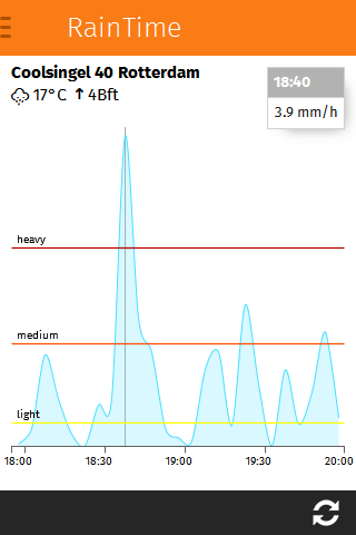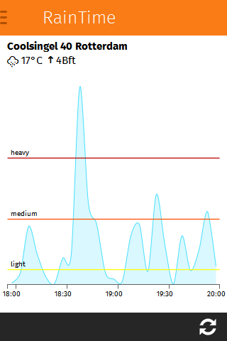 Precipitation forecast for the next two hours in five minute intervals. For every location in the Netherlands.