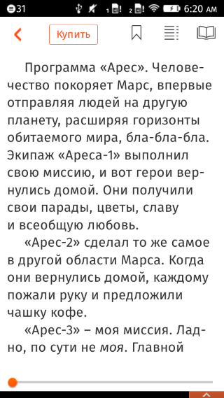 Читай! – это простой и удобный способ читать любимые книги прямо на вашем устройстве. Скачав приложение, вы получаете доступ к 100,000 русскоязычных книг ЛитРес от горячих новинок до классики, включая: - тысячи бесплатных книг; - современную прозу; - фэнтези и фантастику; - детективы; - деловую литературу и многое другое. Преимущества: - читайте и оценивайте отрывки книг, прежде чем купить целую книгу. Большие бесплатные фрагменты доступны для всех книг; - будьте первыми: большинство новинок книжного рынка появляются в каталоге ЛитРес одновременно с выходом бумажной версии; - участвуйте в регулярных розыгрышах призов для зарегистрированных пользователей. Функции и особенности: - книжная полка: все купленные когда-либо книги доступны на всех устройствах и на сайте ЛитРес (при условии использования одной учетной записи), добавление собственных книг в формате fb2/fb2.zip на полку; - подробные аннотации книг; - возможность читать отзывы на книги других покупателей и писать свои отзывы; - страница автора с биографиями, рецензиями, удобным доступом к сериям книг; - возможность оффлайн-чтения книг; - выбор типа шрифта для чтения, его цвета и размера; Обратите внимание: приложение ЛитРес может собирать анонимную статистику использования. «ЛитРес» - продавец лицензионных электронных книг №1 в России и СНГ. Нам доверяют ведущие издательства и авторы, издающиеся на русском языке. Компания «ЛитРес» основана в 2006 году и является крупнейшим продавцом лицензионных электронных книг в России. На сегодняшний день ассортимент компании насчитывает несколько десятков тысяч электронных книг. Каждый месяц в каталоге компании появляется от 1500 до 2000 новых книг.