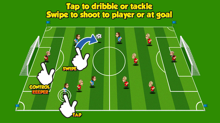 The most amazing soccer game that you have ever played. Action from the first tap. Tap to tackle or dribble. Swipe to shoot to other players or at the goal. Choose between different teams with different skills and speed. Each round is 2 min.