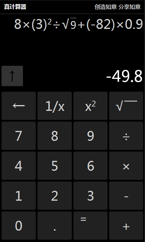 Simple calculator, supporting the full screen, according to the adaptive visualization display input and support to add minus, chengfang prescribing inverse calculation, suitable for everyday computing