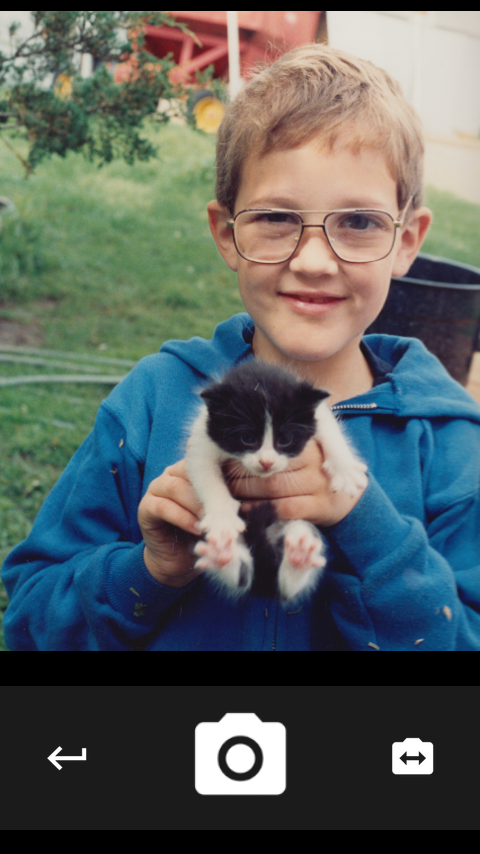 Reenact photos with Reenact. Reenacting photographs from your youth, taking pregnancy belly progression pictures, saving a daily selfie to show off your beard growth: all of these are situations where you want to match angles and positions with an old photo. Reenact is a specialized camera app that makes it as easy as possible. After you select a photo to Reenact, your camera's viewfinder is aligned with the old photo as it fades in and out, allowing you to line up your new shot exactly. Reenact requires at least Firefox OS 2.5.