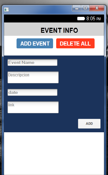 This Application facilitates you to Dynamically Add and delete Events and also it is used to stores the event Details . Further update of this App will be reminding you with an alram.