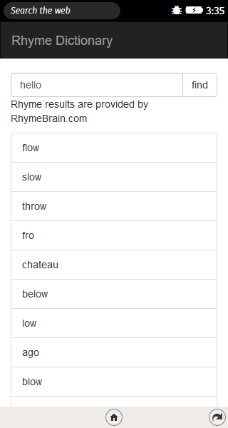 This application finds words that rhyme. The results are provided by RhymeBrain.com