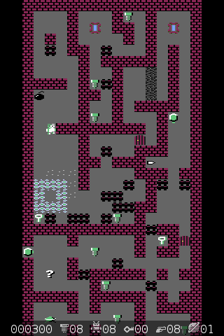 You are trapped in a hostile extrasolar system. You need to collect missing screws in order to fix your spacecraft and escape from each planet. Watch out for monsters - avoid or shoot them if you can. (A retro adventure game from the 80's)