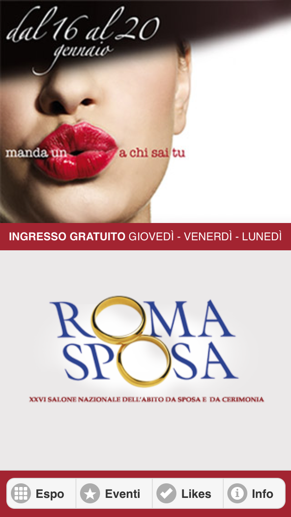 Roma Sposa è il Salone nazionale dell'abito da sposa e da cerimonia, dal 16 al 20 gennaio 2014, ed è giunto alla sua venticinquesima edizione, che anche quest’anno occuperà gli spazi espositivi della nuova Fiera di Roma I numeri di Romasposa sono significativi: 300 aziende ognuna delle quali presenta anche più marchi, per gli sposi oltre 2500 abiti in esposizione e oltre 1200 presentati durante le sfilate che si alterneranno sulla passerella, cinque giorni ricchi di suggerimenti e novità, tante le proposte per addobbi floreali, viaggi di nozze, ricevimenti, torte nuziali, liste di nozze, abiti per gli invitati, partecipazioni, bomboniere.