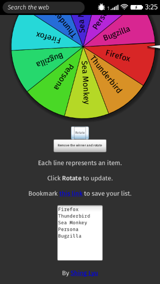 A customizable roulette for lucky draws. Features: * Realistic rotation animation. * Customize the items. * Remove the winner of the previous round with one click.