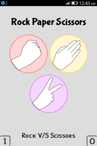 A Rock-Paper-Scissors game, against AI. It is a classic Rock Paper Scissors game, against AI. The user selects his action by tapping/clicking on the image, the AI randomly chooses an action and the scores are computed as +1 for the winner, +0 for tie.