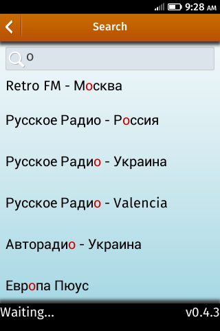 This is a Russian/Ukrainian radios player, it's on beta status. I did this app for fun, and it's open-sourced. I'm learning english so it maybe has grammar mistakes (Sorry!). The source is available here: Source (sometimes is down).
