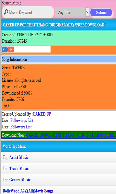 Free music downloads This App will let you download free Songs from public search engines, 250 Million ++ Music Station Download Copyleft and Creative Commons licensed Music for free, Listen to streaming music while reading the lyrics and download it faster. Music Search is a search engine , providing mp3 link results from public search engines, Search by title, singer, movie, and album. - Search Music with lyrics - mp3 (Background Downloading)