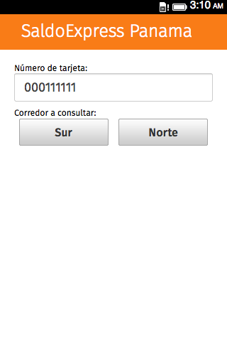 Aplicación móvil que permite consultar el saldo de las tarjetas del corredor sur y norte en Panamá.