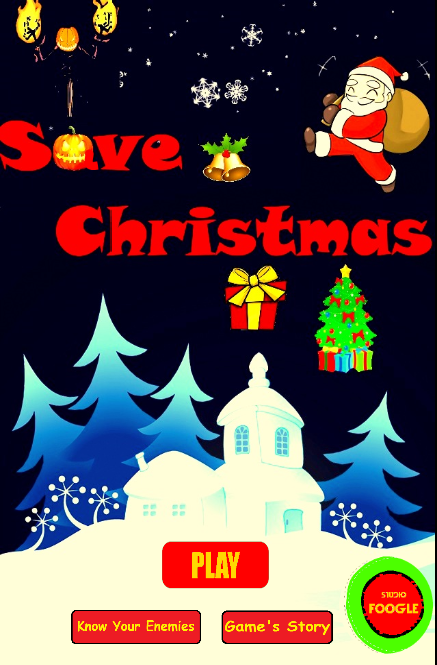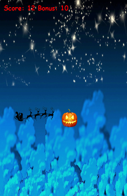 UPDATE: Clear graphical description of enemies and points. Also improved gameplay. It is a flyer game in which Pumpkin king Jack steals all the gifts before Christmas.Santa Claus is now in trouble.He has to find all the gifts from Pumpkin King Jack.But Pumpkin King is shrewd enough to hide all the gifts within Halloween monsters.Now it's time for you to help Santa Claus finding all the gifts by flying in his sleigh pulled by reindeer.
