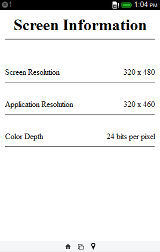 A simple tool for application developers. Shows the screen resolution for the device. Also shows other screen metrics like ViewPort size and Color Depth. This information is useful for developers in making application layouts or to assist users in customer support scenarios.