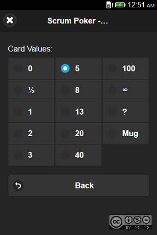 At the beginning of your SCRUM Planning Poker find an agreement on the Card Deck Type to be used in your Poker session and select the corresponding valid card faces.