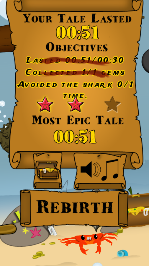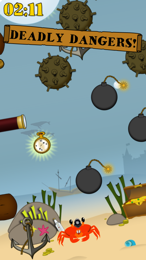 Compatible with Firefox OS 2+ Tap, Dodge, Survive and Improve! Unlock powerful bonuses, dodge deadly hazards, defeat sharks, and reach for the Crown! Why let Birds have all the fun? Live the tale of Sir Scuttles! Aid Sir Scuttles in his journey. Enjoy endless survival game-play that challenges you to go further. Complete skill testing quests to level up and unlock powerful power-ups and customization options for your crab!
