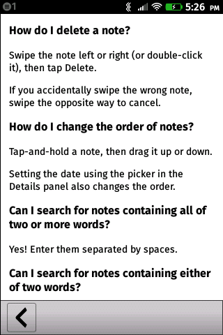Have you taken a note (or copied a snippet of text) with important details, and forgotten where you put it? Do you struggle to remember what was discussed at the meetup in February or the staff meeting last Tuesday? Did you learn something at the conference in Amsterdam that's only relevant now? Serene Notes can help! Just search for any words in your note, or where you wrote it, then skim the list by date. Works offline! Import your existing notes from plain text, Markdown or HTML files. Works with text in any Latin alphabet. (Search is optimized for English, Spanish and German.) Works well on both phones & tablets. (If you have issues, please tap the menu button, select Preferences & Help, scroll to the bottom, and send a Support e-mail. There's no mechanism for us to respond to reviews.)