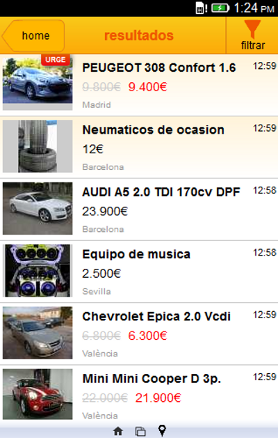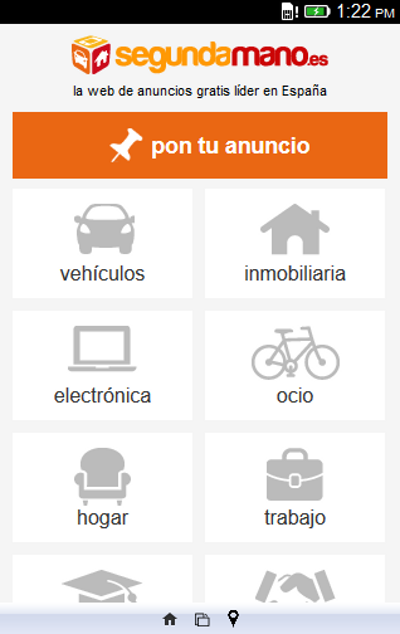 segundamano.es es el portal de clasificados líder en la compra venta de artículos de segunda mano en España. Ya son más de 10 millones de personas que cada mes buscan, compran, venden y alquilan en segundamano.es, productos nuevos y de ocasión. Con la versión móvil de segundamano.es podrás buscar anuncios clasificados y publicar anuncios en toda España. Encontrarás 1 millón de anuncios del hogar, más de 600.000 anuncios de ocio, podrás comprar y vender productos de electrónica y encontrar anuncios de coches de ocasión. En la sección de inmobiliaria tienes una amplia oferta de anuncios de pisos en venta, apartamentos y casas en alquiler. Más de mil anuncios publicados al día desde la versión móvil de segundamano.es. Con segundamano.es harás un buen negocio: gana el que compra y gana el que vende. Accede ahora de forma rápida y fácil, estés dónde estés.