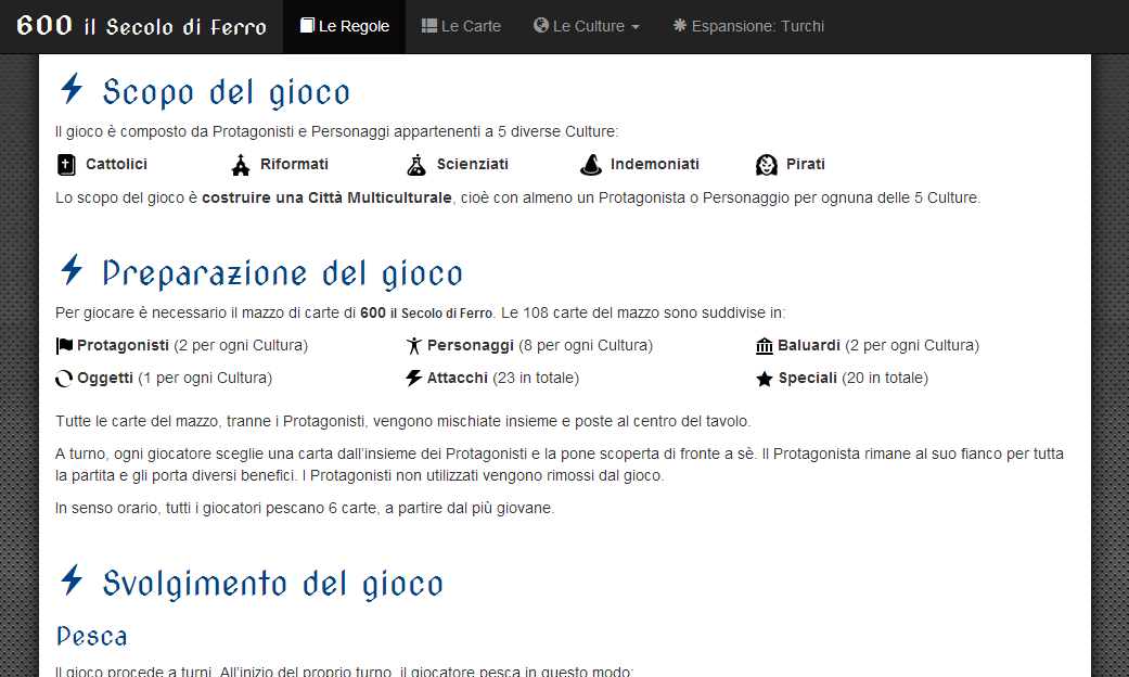 600 il Secolo di Ferro, compendio di regole e approfondimenti per il gioco di carte da 2 a 6 giocatori.