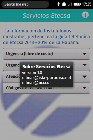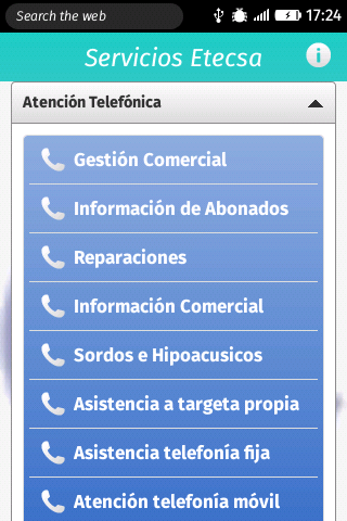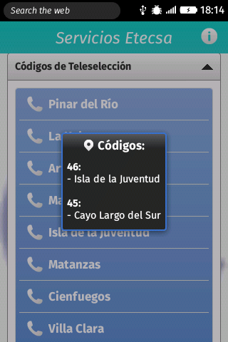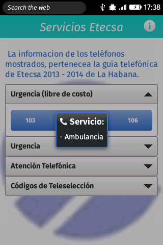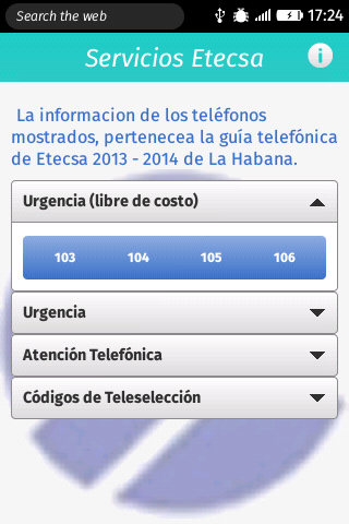 Aplicación con los principales teléfonos útiles de Etecsa.