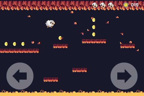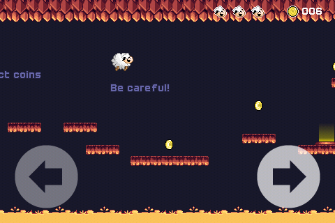 Little sheep was walking along the dark caves and was collecting gold coins. Rescue it from avalanche and imminent death!