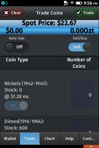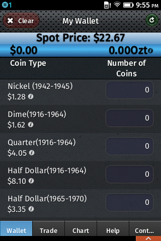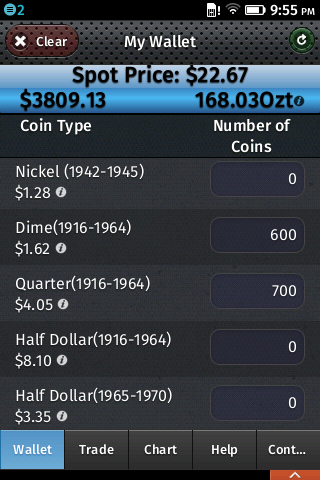 Have a drawer full of change and think it's worth more than face value? Need to know how much pure silver is in a bag of old change? This application gets the current spot price of silver and lets you find the value of a combination of change (American). You'd be surprised at how much your change may be worth. Spot Silver value is live. - Find out how much your stash is worth with LIVE UPDATING METAL VALUES! - Maintain your inventory and easily trade, buy or sell with others! - Watch the prices of precious metals change during the day! Note: this does not provide numismatic values on rare coins.