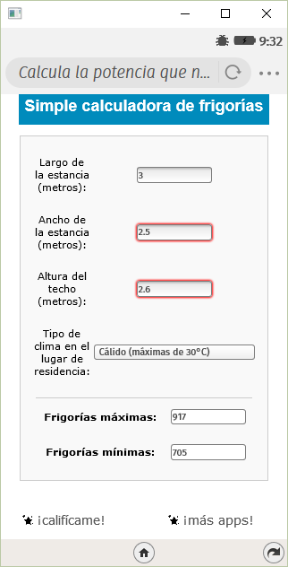 Simple calculadora de frigorías