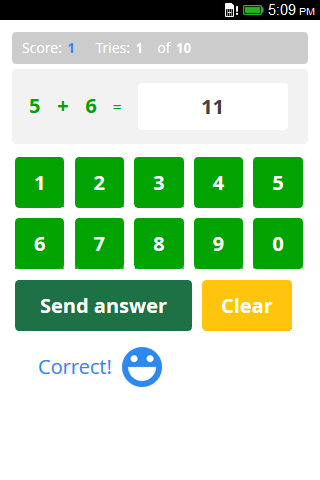 Simple Math is a calculator for kids with random summation to improve the learning process in math. This first version allows to solve 10 summation operations to get the maximum score of 10.