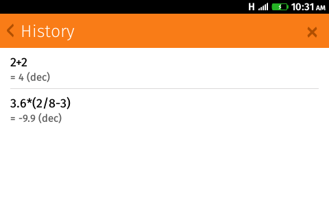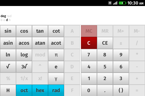 Calculator for Firefox OS devices Features: - No internet connection required - Working landscape mode - Calculation history (10 items) - Scientific functions: -- trigonometric (working with degrees and radians) -- logarithms -- other - Built-in some constant values (Pi, e and gamma) - Support for binary, octal and hexadecimal numbers. Please provide feedback. It will help me make an application better Thank you Version 1.7.1 notes: - fixed text align on buttons - added theme color