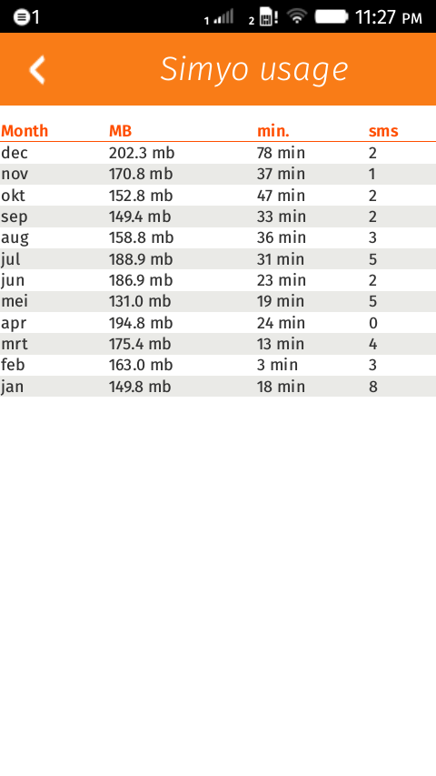 Simyo NL mobile usage