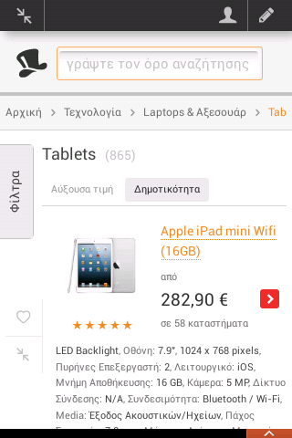 Η πιο δημοφιλής μηχανή αναζήτησης τιμών και προϊόντων στην ελλάδα. Βρείτε όλες τις τιμές και διαβάστε αξιολογήσεις μελών για πάνω από 5.000.000 προϊόντα και 1000 καταστήματα.