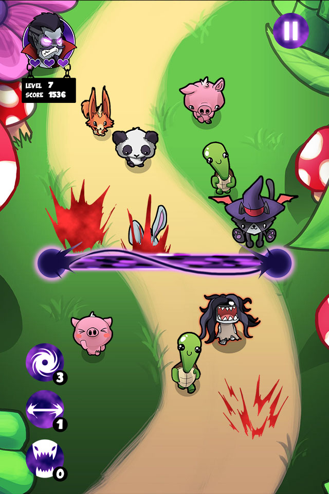 Prince of darkness and lord of infernal creatures, your castle is under the attack of the terrible, monstrous, cataclysmic… army of tiny cute animals from the wood next door… okay, said like this, it doesn’t seems so bad but in fact it’s a serious problem. If you want to still be taken seriously by the people you rule over, you’ll have to smash all of these adorable fur balls. It’s time to work! Smash All These F*** Animals is an arcade game in which a flow of forest animals will go through the top of your screen to the bottom. You only have three health points and each animal that reaches the bottom of the screen will make you lose one. If you want to get rid of these, you only have to tap on them. You can also use terrible spells to exterminate multiple enemies in one hit. Each level will bring new enemies that will get faster and faster and whose moves will become more and more unpredictable. Smash these small little bastards to a pulp and regain your dignity as a master of chaos and evil! CHARACTERISTICS -Multiples bonus -Hundreds of creatures -Best score