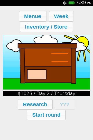 Manage your own snack bar. Buy goods and sell them again and try to make a fortune. Research modern snack bar technologies and keep improving your offerings. Note that this app is still in Alpha. I consider it to be good enough to be published here but it may have some rough edges. Help me improving it and write to [email protected] and tell me what you think.