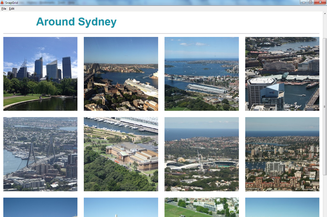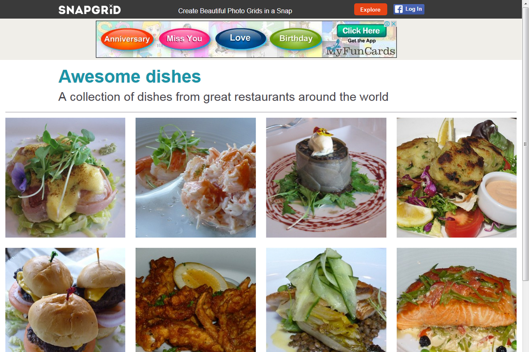 With SnapGrid you can create beautiful photo grids in a snap. Easily upload photos onto the grid and clicking a photo enlarges it and brings up a beautiful slideshow. Each SnapGrid is full screen and looks great on desktop, tablets and mobile making it great to share with your friends. Easily sign up through Facebook to create your SnapGrid in minutes.